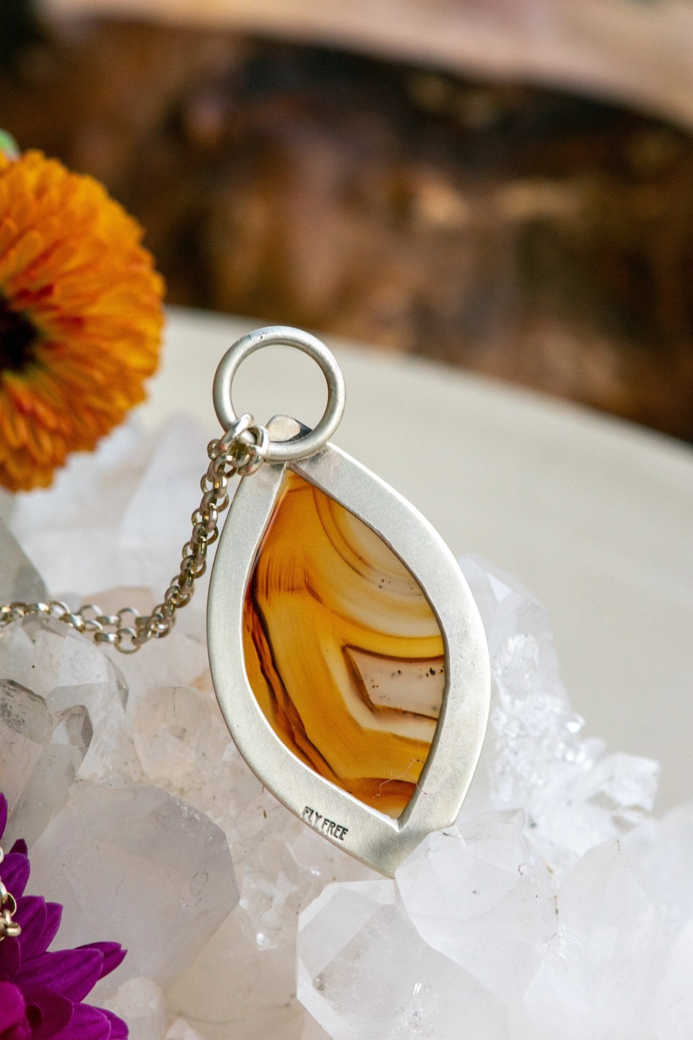 When Montana agate spreads out its iron lines like this, my eyes like to follow the swirls and eddies, the same flow of water around the front of a boat or the wing over airplane wings.